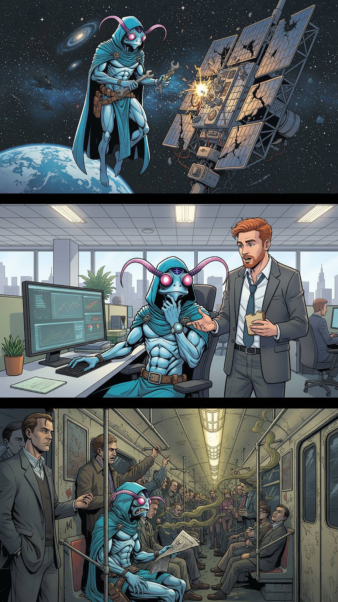 ...Аристарх, шпион под личной человека, с Квазара-7, прибывает на Землю в 2011 году с миссией: оценить примитивную планету. Но холодный агент не готов к земному хаосу — пирожкам Ольги Петровны, байкам Максима и их заразительной дружбе. Саркастичный, но всё чаще уязвимый, Ультра-Квазар Q87! (настоящее имя пришельца), сражается с космическими пиратами, спорит с галактическим советом и проклинает всё — от пива до собственных чувств. В финале он должен выбрать: долг или дом? Юмор (!сарказм), абсурд и тепло пропитывают дневник, где каждый флэшбэк раскрывает, как Земля меняет шпиона. Сможет ли Аристарх остаться верным Квазару или станет земным братом? Это не просто миссия — это пирожковая революция!
