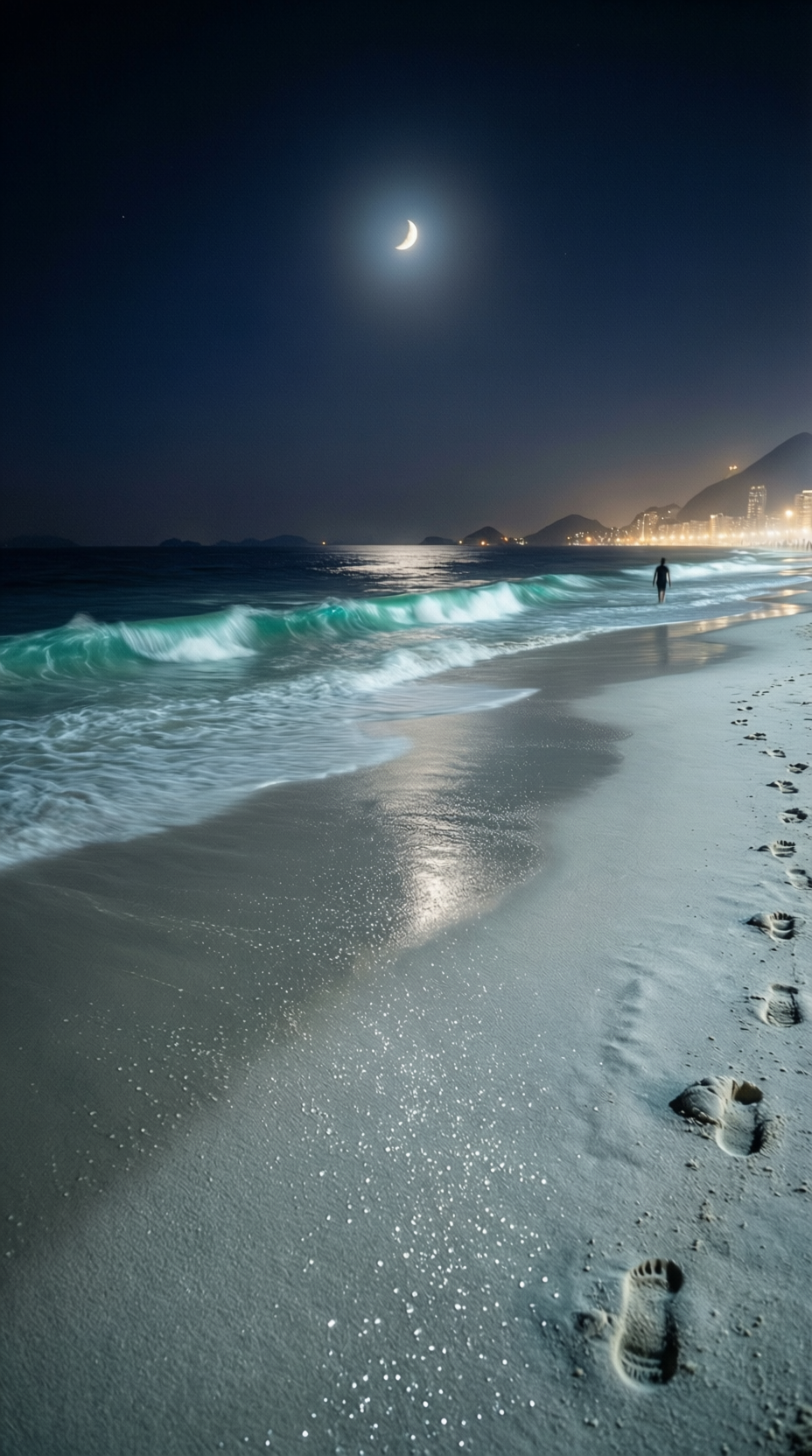 Ночной пляж Копакабаны, Бразилия. Место, откуда началось путешествие главного героя.
