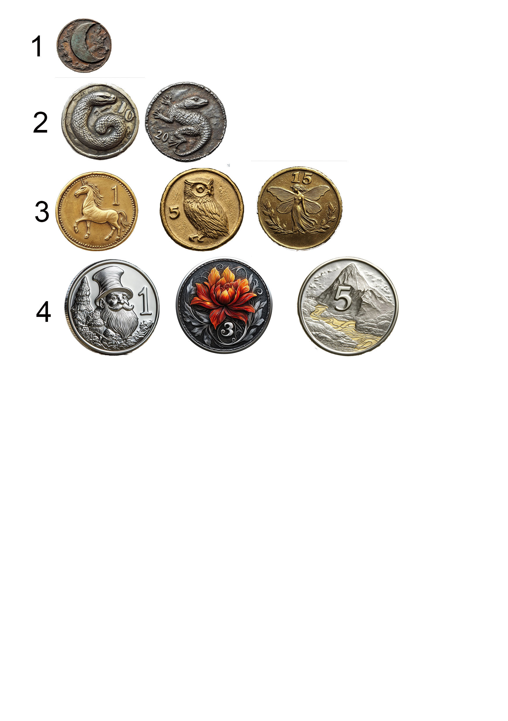 Язык Эонов, или как считалось язык космических глубин, на котором разговаривали только боги.Золотая монета. По поверьям, эта монета была образовавшаяся из слёз фей. И касаться таких монет, было очень опасно для жизни. Камень под землёй, на котором с помощью природной, эмоциональной, духовной и магической рун, написано имя Альва1. йонт. Во времена Алхима, практически, вышедшая из употребления. 2. фьян 3. пфен 4. тольн. Монеты появившиеся спустя 300 лет, после времён Алхима.
