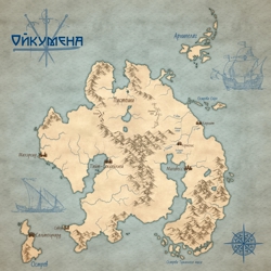 Все дополнения к миру Ойкумены и все сюжетные ходы согласованы с Игорем Николаевым. Это не фанфик, а совместный проект. Персонажи, события и географические объекты "Линии Адемара" далее будут упоминаться в "Линии Елены".