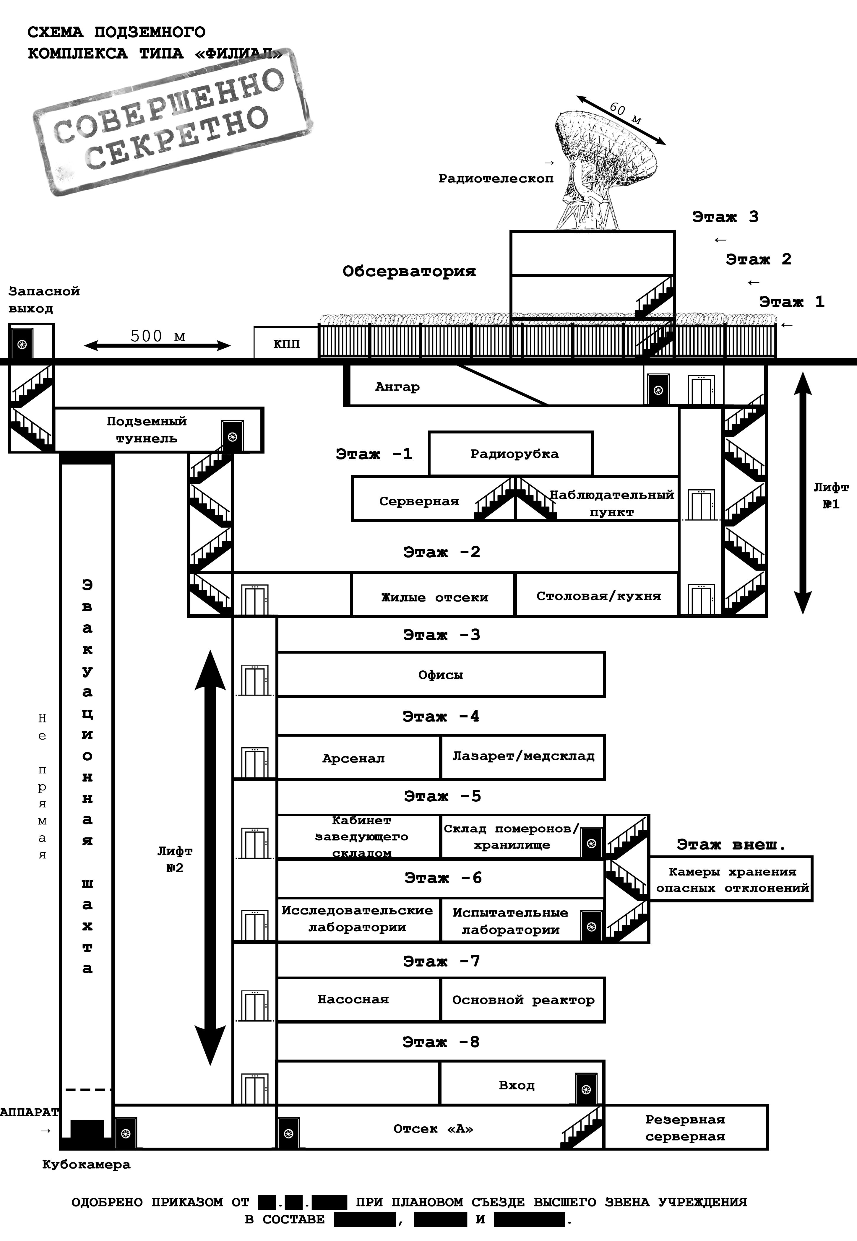 Оперуполномоченный низшего звена годового стажа, позывной Днепр.Бывший младший научный специалист, временно повышенный до среднего звена, оперативник 2-летнего стажа, позывной Капель отстранён от работы.Оперуполномоченный 3-летнего стажа, позывной Бор.Оперуполномоченный низшего звена на стажировке, позывной Бюро.Старший научный специалист отдела А, позывной Франк.Замкуратора Филиала №2, позывной Койма.Соня. Отклонение №212. Девочка 16-ти лет по имени София.Капитан спецгруппы Пария, позывной Свет.Профессор Узоров Леонид Валерьевич, доктор КЗКХ.Заведующий складом померонов, позывной Горе.Филиал Учреждения №. Вид снаружиСхема подземного комплекса Филиала Учреждения №
