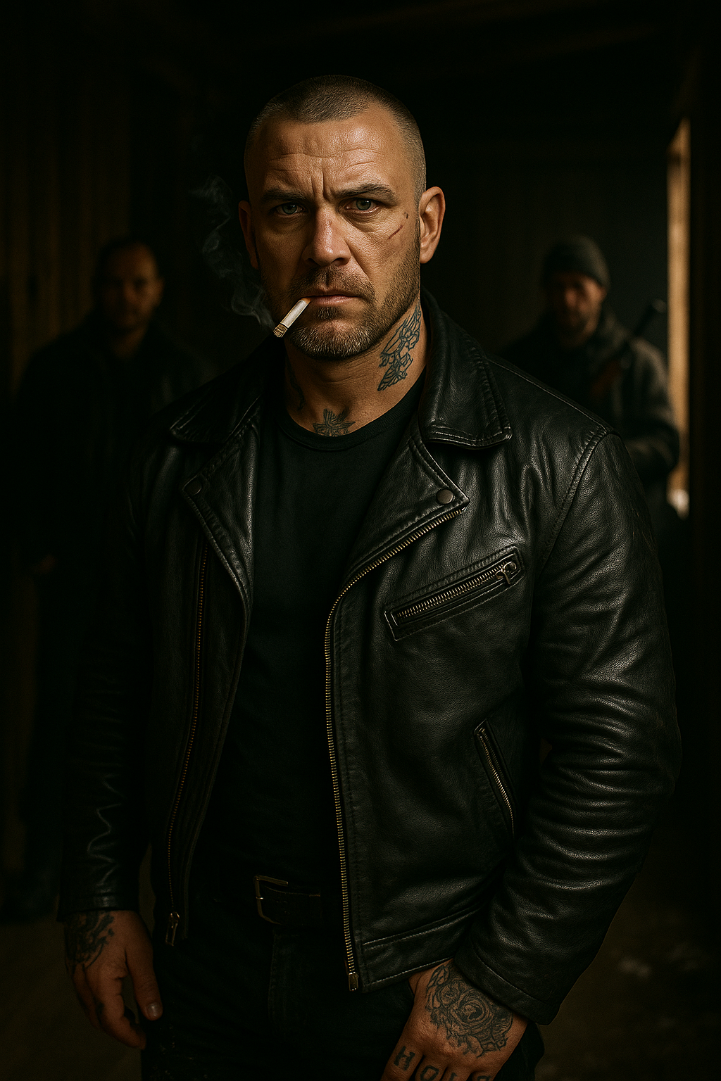 Меня подхватывают под мышки, ставят. Голова кружит так, что пол на секунду поднимается ко лбу, а потом падает куда-то в колени. Оказываюсь лицом к лицу с рослым бандюгой, на голове «ёж», весь в коже и татуировках, вид у него начальственный, взгляд — винтовочный прицел, который никогда не мигает. По бокам ещё двое; у одного на ремне «Калаш», как слово без перевода.