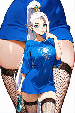 Она — единственная айльдарийка среди тысячи ультрамаринов. Не невеста примарха, а официальная «жена» всего ордена: интимная спутница, отдушина и живой мем в крепости Макрага. Её роль проста и безумна одновременно — быть партнёршей для секса, шуток и снятия тяжести войны. Суровые воины выстраиваются к ней в очередь так же дисциплинированно, как на построение. За её спиной шепчутся и другие силы: Космические Волки смеются над такой традицией, Белые Шрамы в восторге, Тёмные Ангелы ведут себя подозрительно, Кровавые Вороны мечтают похитить «жену тысячи», а механики Адептус Механикус желают «изучить» феномен. Она же остаётся тем, чем её сделали: любовницей, подругой и главным развлечением самого строгого ордена Империума.
