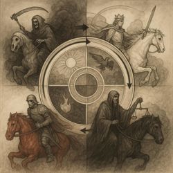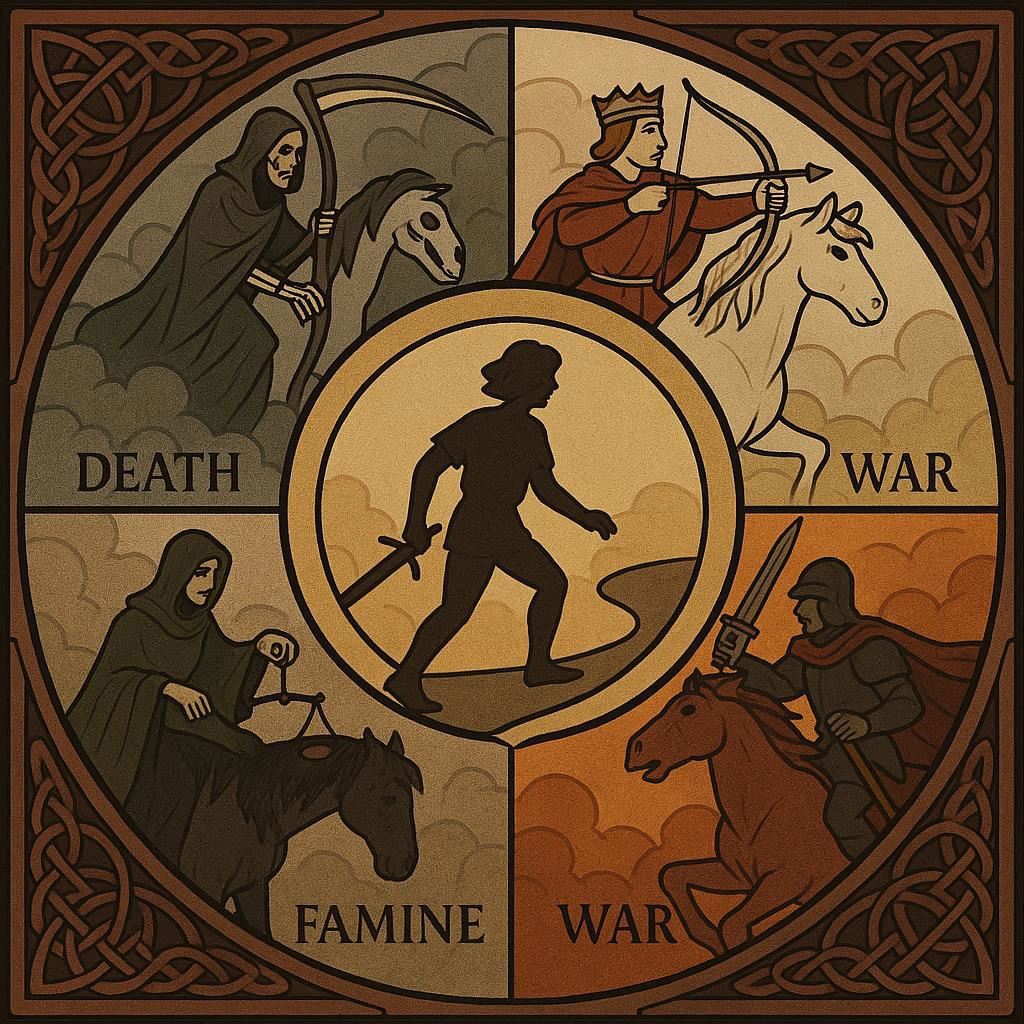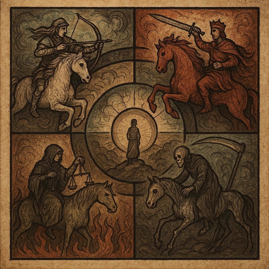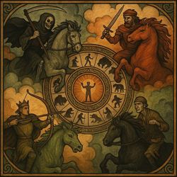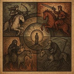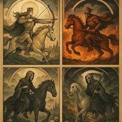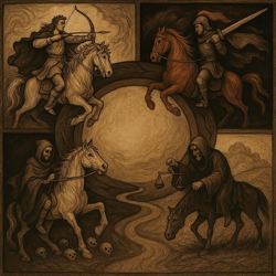 Сюжет Четырех Всадников Апокалипсиса, заимствованный из шестой главы Откровения Иоанна Богослова, традиционно воспринимается как классический образец эсхатологического нарратива — финального аккорда мировой истории, знаменующего собой божественный суд и конец света. Однако при более глубоком анализе этот канонический сюжет обнаруживает поразительное структурное и архетипическое сходство с универсальной моделью повествования, известной как «Путь Героя» или «Мономиф», описанной Джозефом Кэмпбеллом. Рассмотрение истории Всадников не как кары свыше, а как персонального, инициатического пути трансформации главного действующего лица (будь то пророк, человечество или сама реальность) открывает новые горизонты для интерпретации этого мощного символа.