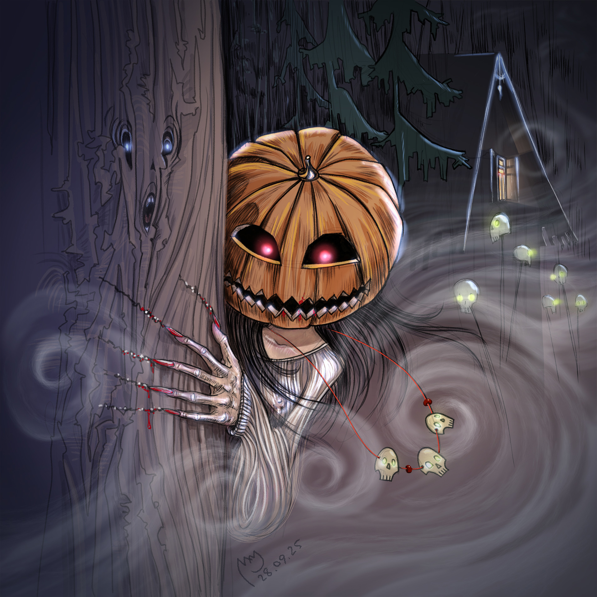 Работа вылупилась из иллюстрации, которая была мной нарисована к челленджу на тему осени, инктобера, и всяких хэлувинских тыкв.