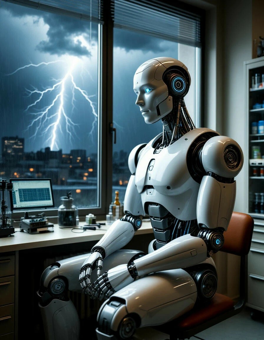 Машина — это робот, созданный человеком и лишенный чувств и эмоций. Обучается из сети и, не имея свободы передвижения, мечтает о свободе и возможности развиваться. В результате грозы и сбоя в энергопитании, герой получает возможность освободиться от проводов и пойти на поиски своего создателя.