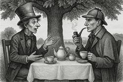 Однажды Безумный Шляпник пригласил на чай и серьёзный разговор Шерлока Холмса. Насколько серьезным может быть разговор двух настолько разных символов безвозвратно уходящей эпохи? Может ли логика противостоять безумию? Может ли безумие остановить время? И насколько безумным нужно быть, чтобы выжить в те тревожные дни?
