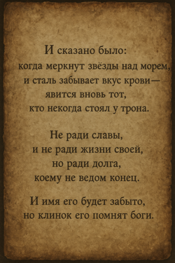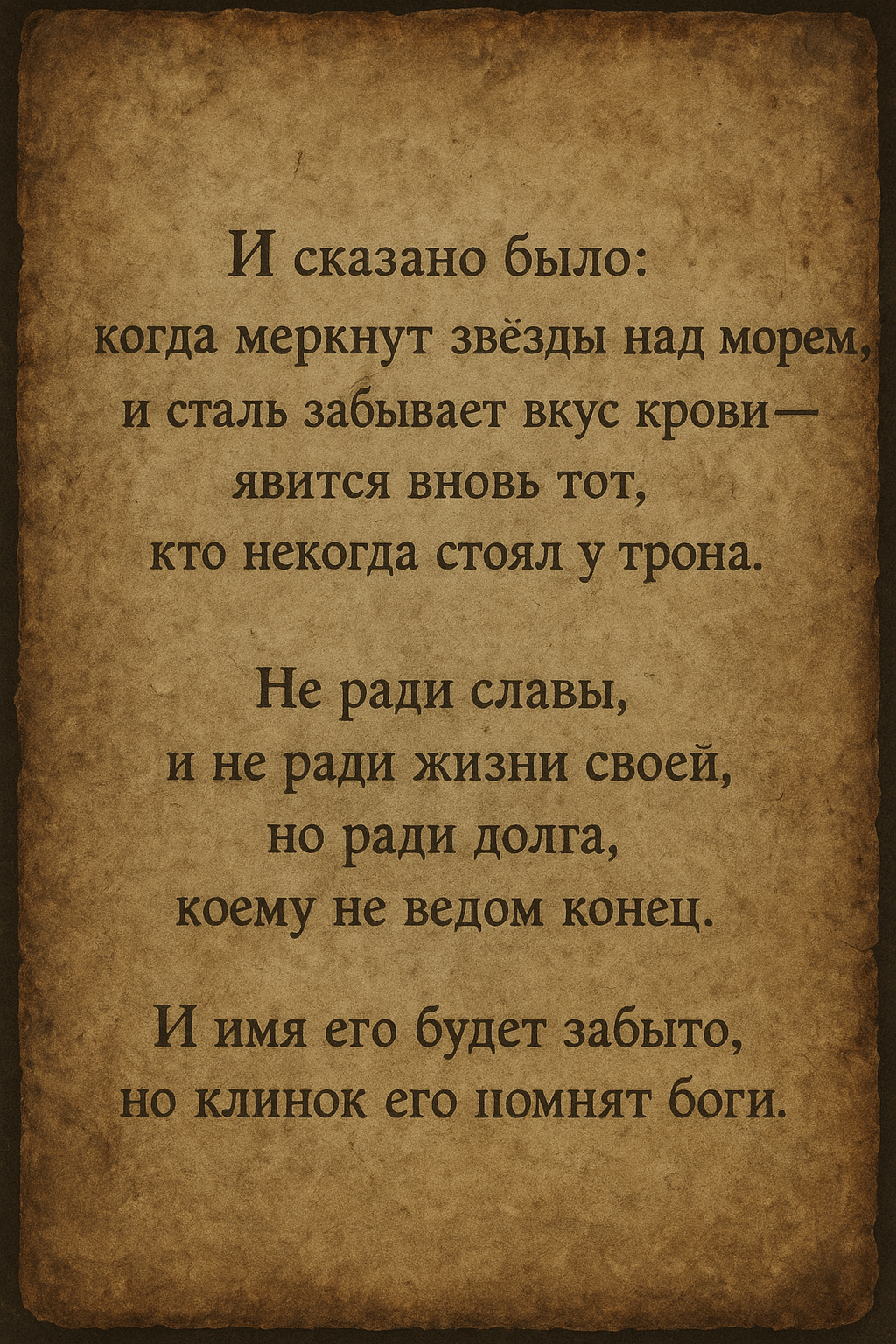 Предрекая этот смутный период, на пепелище одного из мелких поселений, открывает второе дыхание и свой взор некто, кого воля богов вернула — осведомлённого об угрозе и жившего в этом мире тысячу лет назад, в эпоху почти столь же отчаянную.