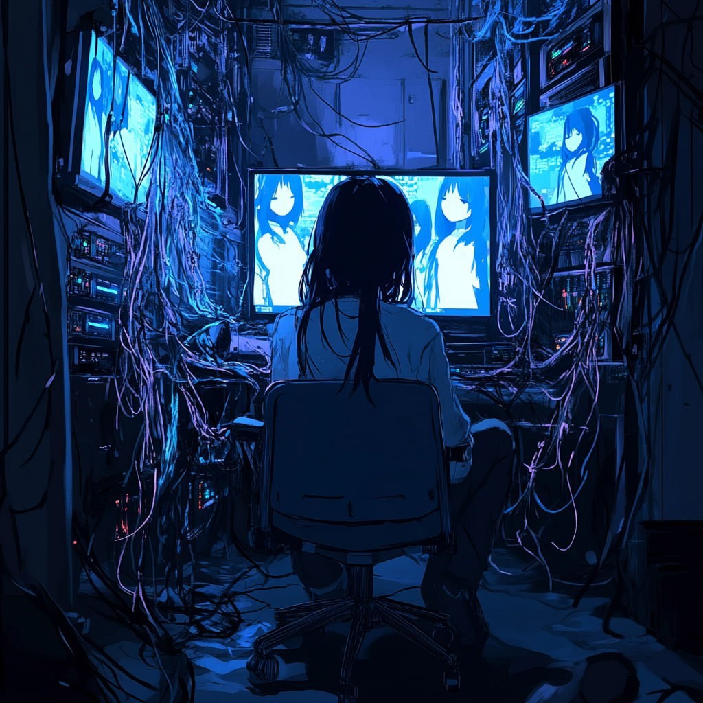 Город, люди и работа с серверами постоянно действуют на нервы Виктору. Сегодня к нему привели новою коллегу, что зависает в мониторе и странным образом погружает в идею... Провода всё больше утягивают, диоды становятся звёздами, а стены исчезают. Лицо девушки мигает всюду и всё ближе к Виктору, а тёмная серверная каморка становится немного уютнее.