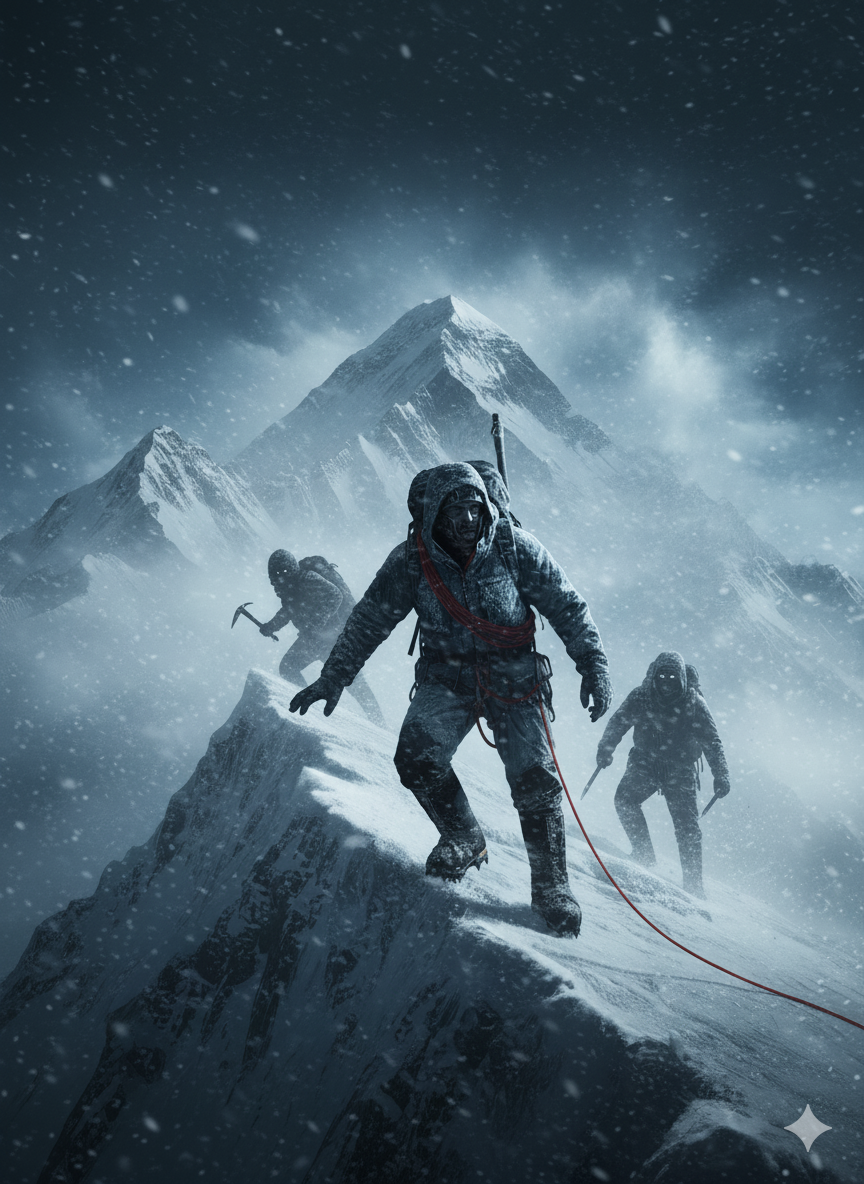 Среди ветра, снега и лжи он ведёт расследование, которое превращается в бой на высоте восьми тысяч метров — холодный, безмолвный суд между живыми и мёртвыми.