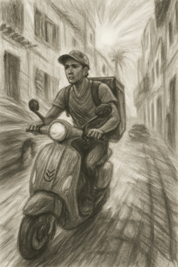 Нико — лучший курьер Ларукана. Пробки? Не проблема. Он знает каждый переулок, чувствует город как свой собственный организм. Его интуиция — просто магия! ✨Но когда программистка Зоя начинает изучать его GPS-маршруты, она обнаруживает нечто невероятное... 🗺️ Что, если твоя суперспособность — вовсе не твоя? Что, если кто-то ведёт тебя, как пешку? И главное — зачем? 🎯 Средиземноморский город. Тайны. Конспирология. 🌙