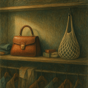 Это повесть о двух сумках — Анжеле Гучиевне и Авдотьe Авосьевне, — которые прожили совершенно разные жизни, и однажды оказались рядом на полке секонд-хенда. Одна пришла из мира витрин, шампанского и городов вроде Милана и Нью-Йорка. Другая — из рынков, очередей, тяжёлых пакетов и тёплых кухонь.