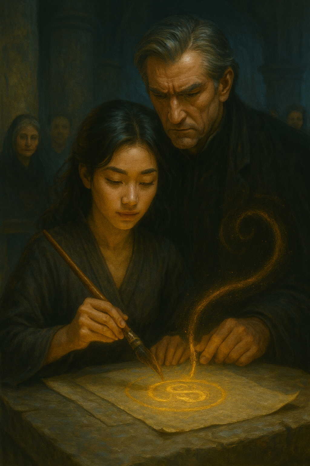 Его академия трещит по швам — главный печатный контур разваливается без “совместного пера”. Мой странный дар оживлять буквы дыханием подходит идеально: вдох — подъём кисти, выдох — удар по судьбе.