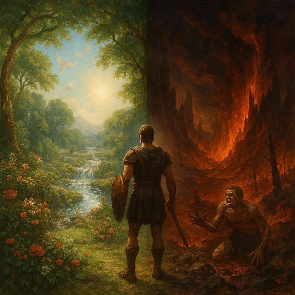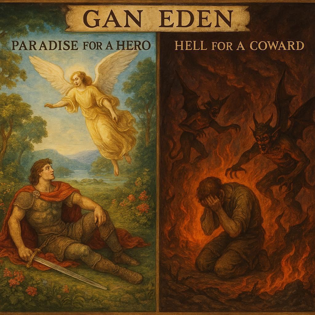В истории и мифологии образ рая, места вечного блаженства, является одним из самых устойчивых и в то же время вариативных. Особый интерес представляет синтез двух, казалось бы, разнородных концепций: рая как сада наслаждений и рая как награды за воинскую доблесть. Ярким примером такого синтеза служит образ *Ган Эдена*, который при семантическом разборе на иврите раскрывается как «Сад Наслаждения», но в контексте определенных культурных и исторических интерпретаций может быть осмыслен как «Рай Воинского Царя». Однако эта система посмертного воздаяния была бы неполной без своей обратной, карательной стороны — концепции *ада для трусов*. Примечательно, что в современной воинской среде эта архаичная дихотомия обрела новую, ироничную жизнь в жаргонном выражении *«Ган Эден для героя»*.