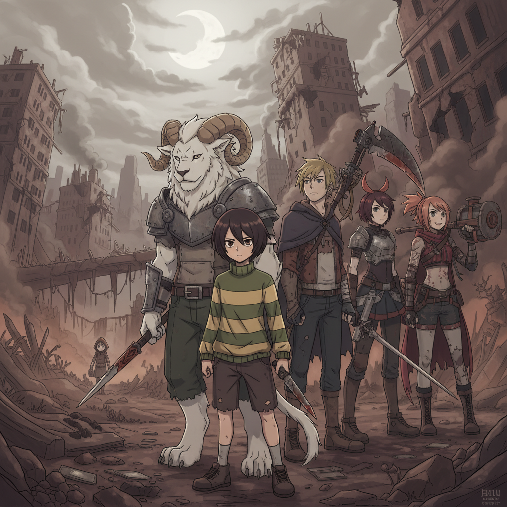 Вот возникла такая идея после 9 сезона RWBY. Я правда думал как бы выглядила Фриск из GleichTale (фанатская анимация), но начиная описывать... в общем давай представим что наши герои из альтернативы уже после смены Фриск на Чару (мужской по факту). Как помним она "глючила". А для повода испытания поменяем жизнь Санса на Гастера, и получается что ради стабилизации результата вмешательства в последовательность событий Чаре надо применить силы на Ремнант. Азриель там за компанию (хотелось монстра для колорита добавить). На сей раз писал сам, но для вариативности загружал свою часть текста в нейронку и спрашивал как возможно поступить. Зачем? Вмешательства Фриск порождали гличи, и к тому-же для положительного исхода надо было перебирать варианты, вот и варианты предложенные нейронкой считал "сброшенными". Но один вариант я сохранил, тот где нейронка предложила ответ доктора Гастера... слишком меня ужаснула идея бездушной машины. Будет как альтернативный вариант. Редактирую.