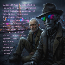 "Ветер разгонял по стеклу капли нефтяного дождя. Небо куксилось в мрачной гримасе, пока мегаполис зажигал огни как неугасимые костры ада. Развозить оставшиеся заказы было уже неактуально. Серёга просто ехал куда-то вперёд."