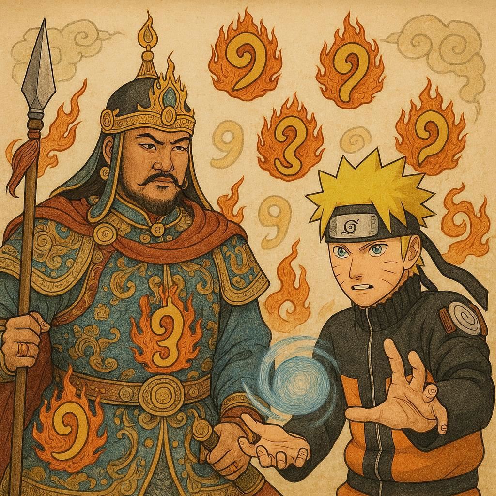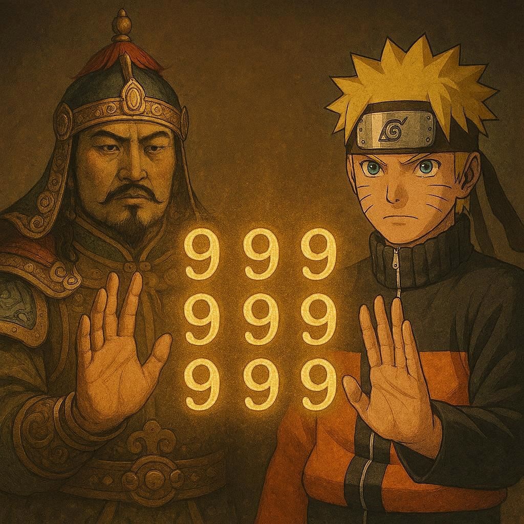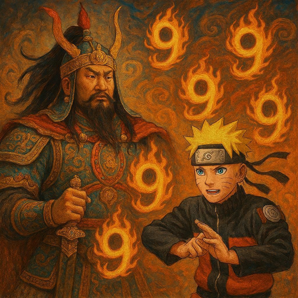 В мифопоэтической традиции многих культур число девять обладает особым сакральным статусом, символизируя полноту, предел, цикличность и божественную мощь. Это число, возведённое в степень (девять девяток), становится гиперболизированным выражением абсолютного совершенства, конечной точки перед переходом в новое качество (10 как возврат к 1 на новом уровне). Данное эссе исследует трансформацию этого архетипического символа на примере монгольской мифологии и его удивительные параллели в популярной манге и аниме «Наруто» Масаси Кисимото. Мы проследим, как концепция «драгоценности девять девяток» и образ девяти могущественных существ находят своё отражение в ключевых элементах вселенной «Наруто»: плаще Мудреца и Девяти Хвостатых Зверей, а также рассмотрим возможные культурные мосты между этими традициями.