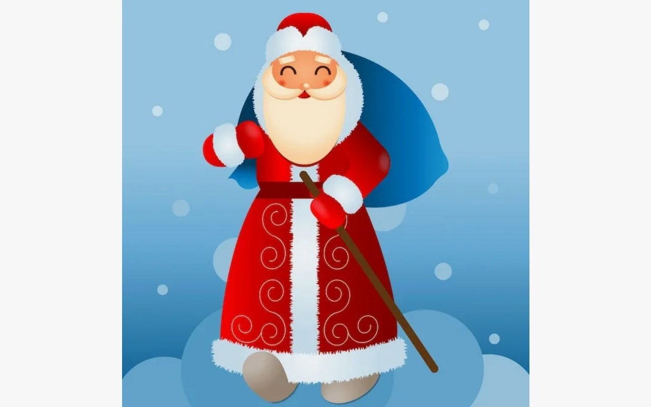 Дед Мороз едет через лес что-бы подарить на новый год девочке Кате коньки.