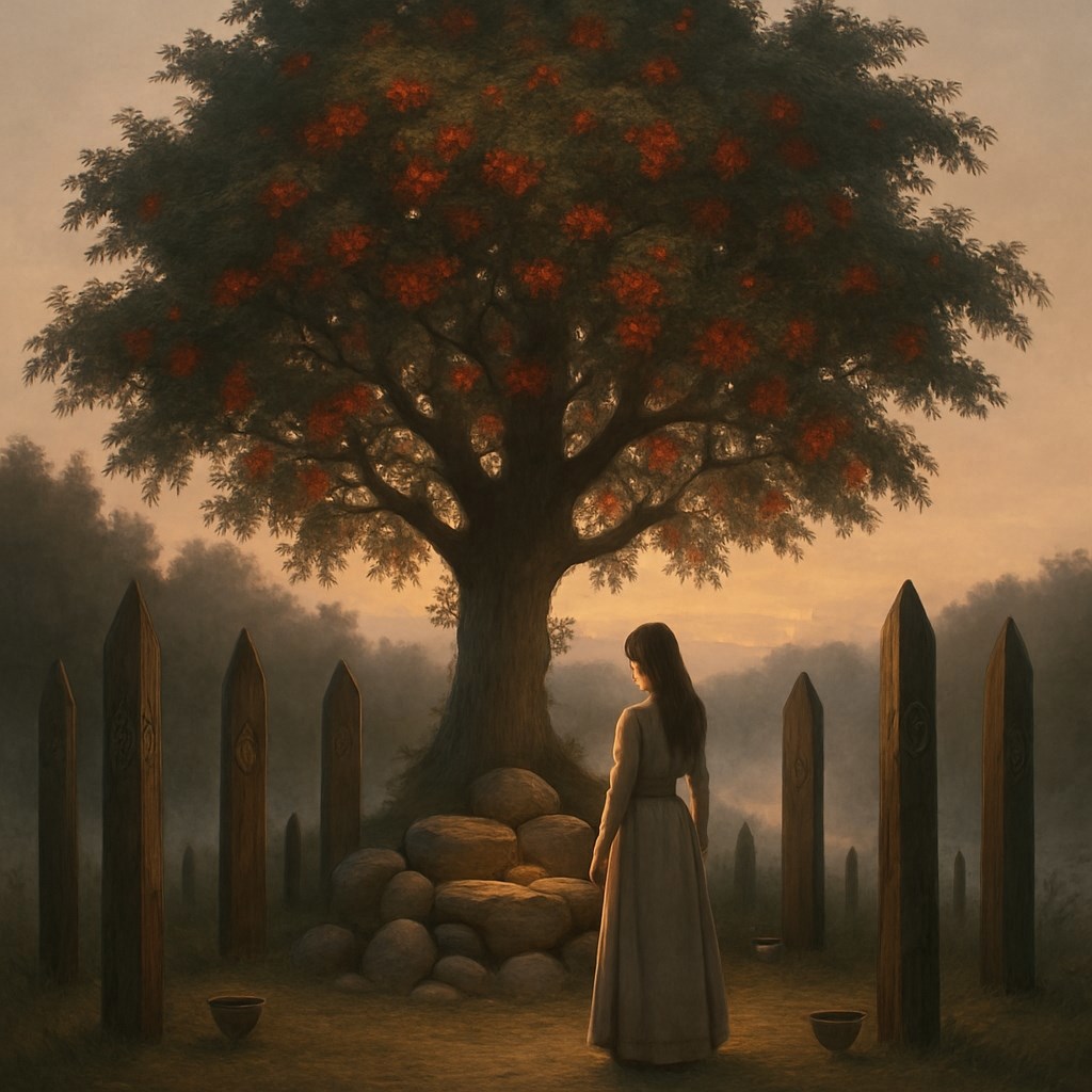 «Капище» — лирический, почти мифический рассказ от лица священной рябины, стоящей у капища на Немде. Дерево — хранительница памяти, свидетельница людских молитв, подношений и тайн — описывает приход женщин с мольбами, их песни и обряды, впитывает горечь и надежду, оставаясь опорой для тех, кто ищет исцеления и прощения.