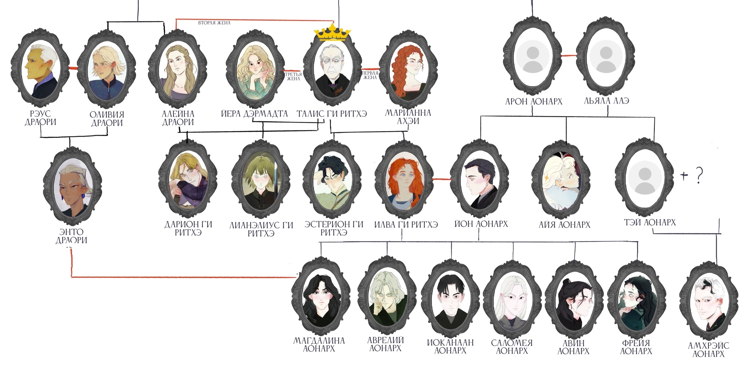 Дубовая ветвь — символ императорского рода Ги Ритхэ. Дуб разросся, и ветви пытаются сломить друг друга. Империя раскалывается на две части.