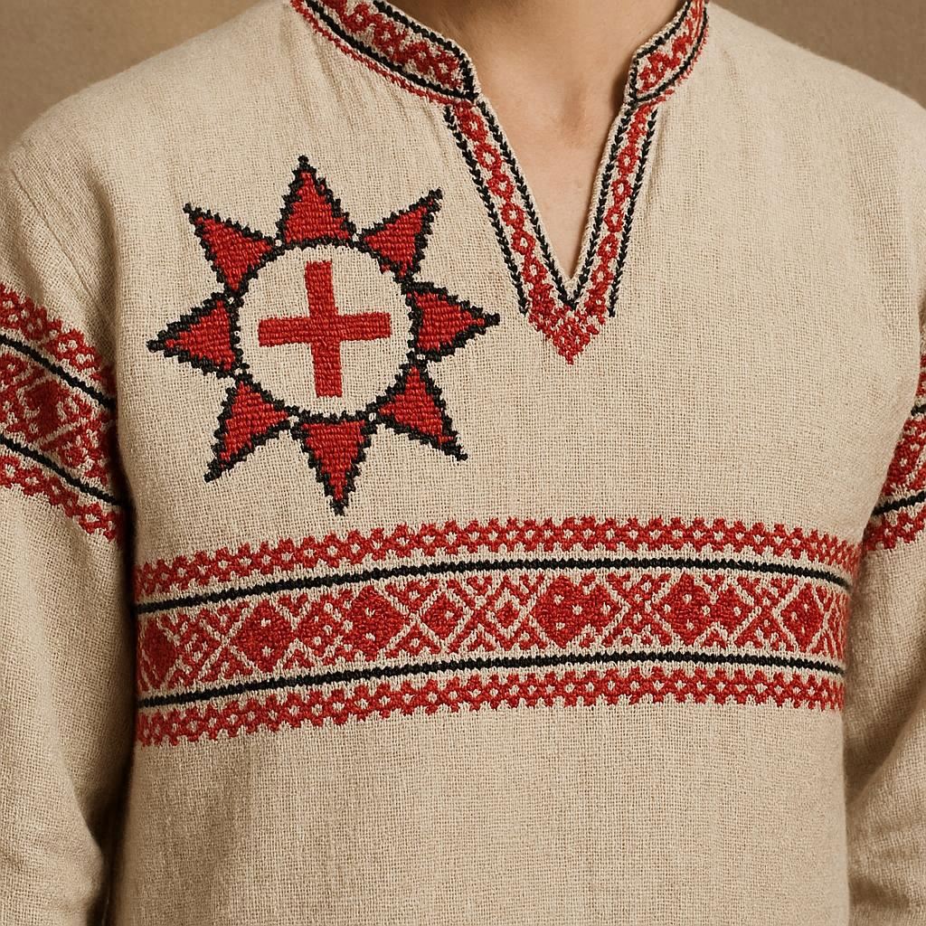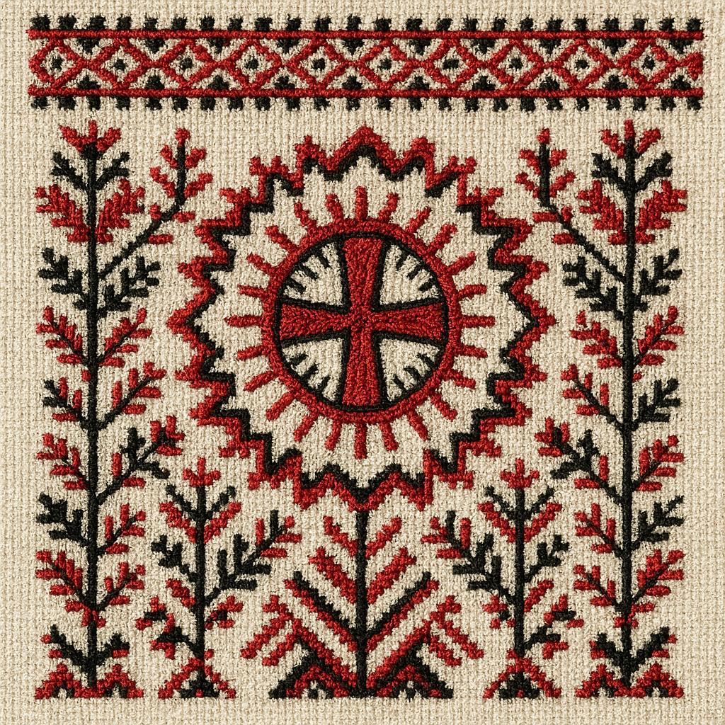 Символический язык традиционной культуры часто оказывается сложнее и многограннее, чем это представляется на первый взгляд. Ярким примером такой смысловой полифонии является изображение креста в центре солярного знака (часто называемого «солнцеворотом» или просто «солнцем») на традиционных славянских вышиванках. Этот мотив, распространенный от Подолья до Русского Севера, раскрывает глубокую архаическую связь между крестообразной фигурой и культом небесного светила, позднее переосмысленную в христианском ключе. Данный орнамент представляет собой не просто украшение, а сложный семиотический текст, в котором переплетаются космогонические представления, магическая практика и религиозная философия.