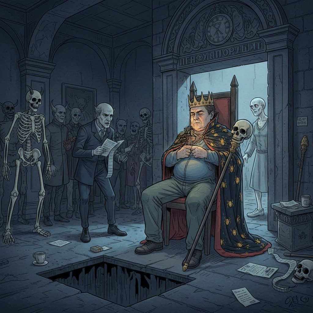 Театральный разнорабочий дядя Петя случайно активирует портал в Ад, надевая реквизит Тёмного Властелина. Демоны принимают его за правителя, Бухгалтер требует отчётов, а привидения ведут себя непристойно. Петя почти привыкает к роли, пока в подземелье не появляется его жена – куда страшнее любого ада.