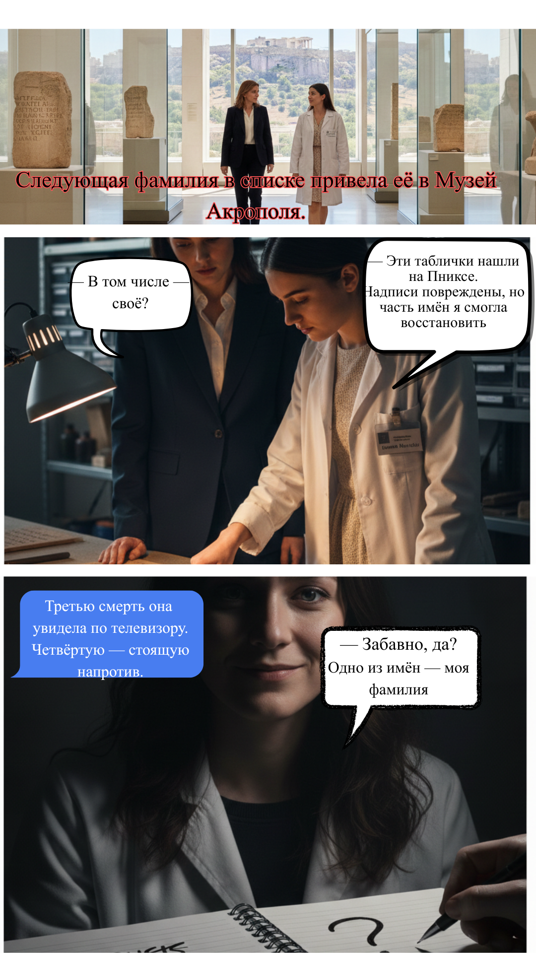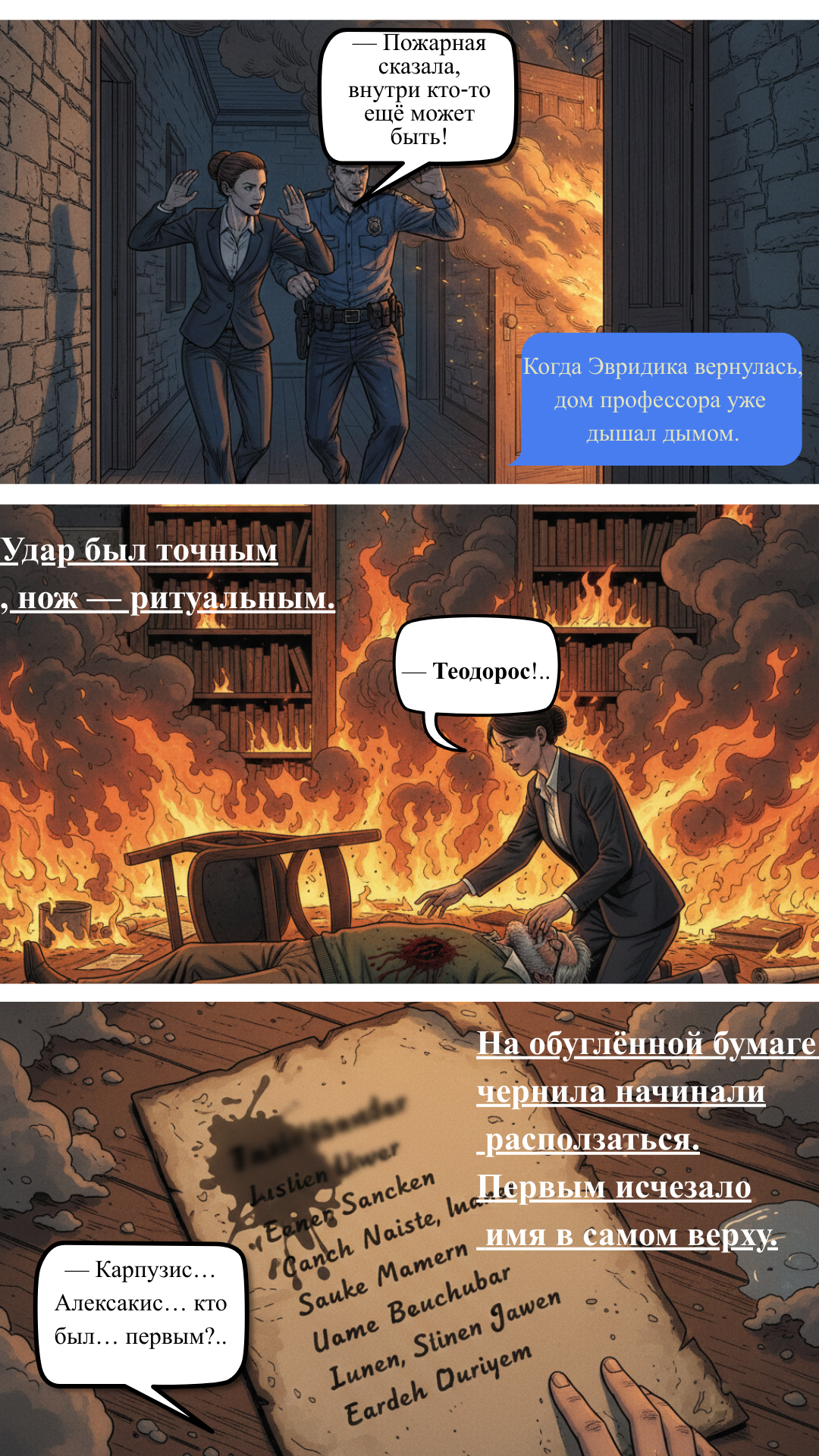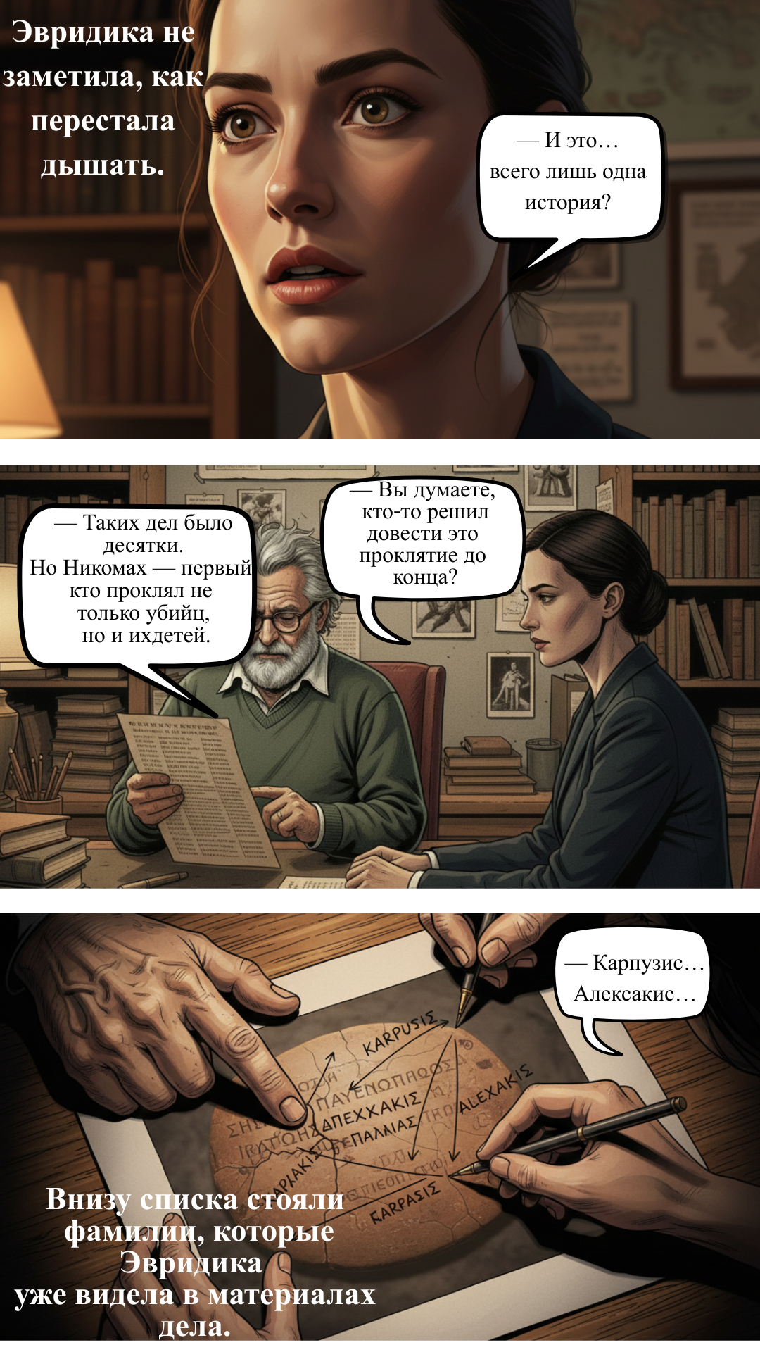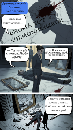 Но самое страшное — одно из имён принадлежит семье самой Эвридики. Теперь ей предстоит не только остановить убийцу, но и разорвать цепь проклятия длиной в тысячелетия.