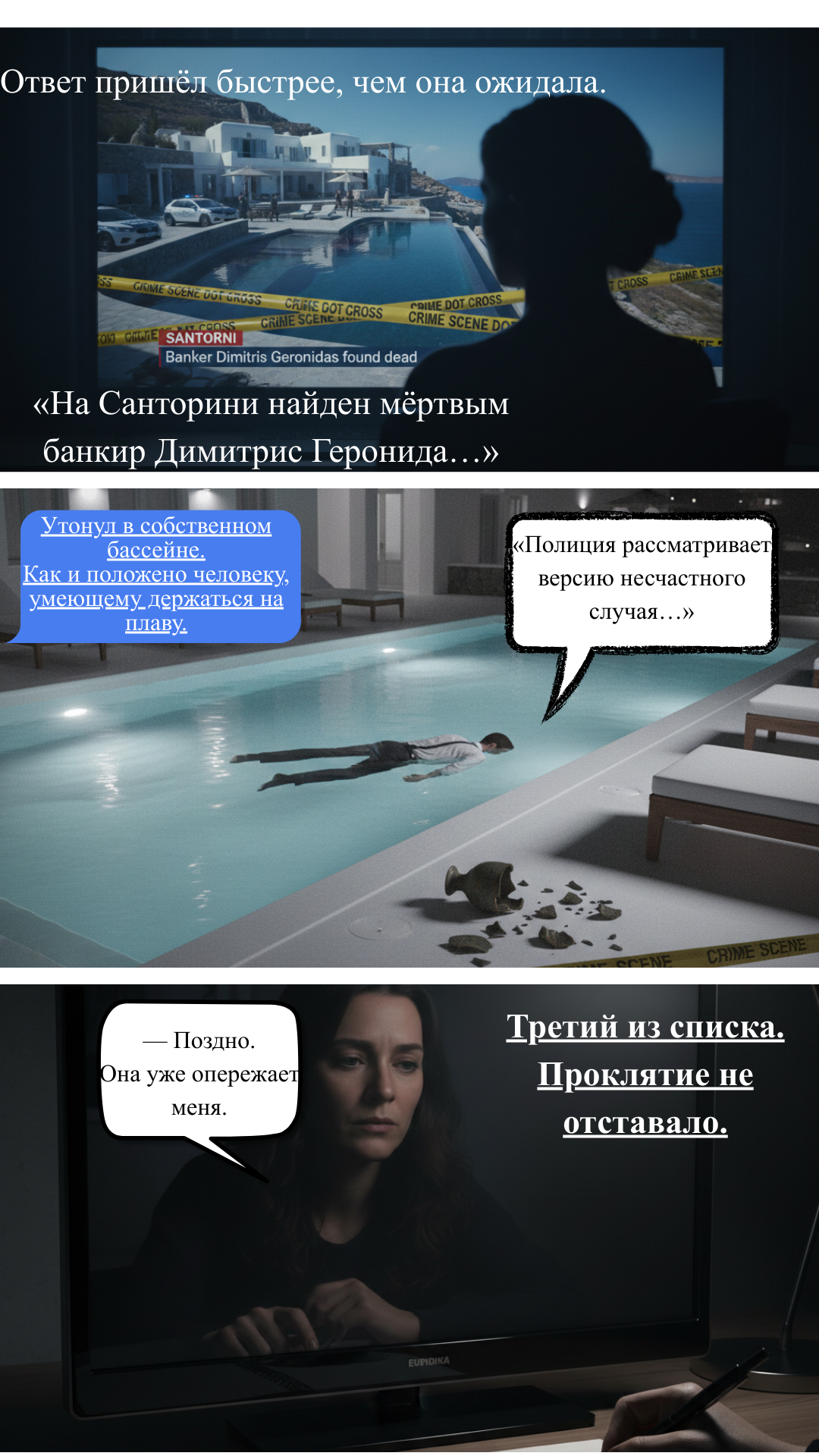 Детектив, сплетающий греческую мифологию с современным расследованием. История о том, как прошлое настигает настоящее, а справедливость превращается в месть.