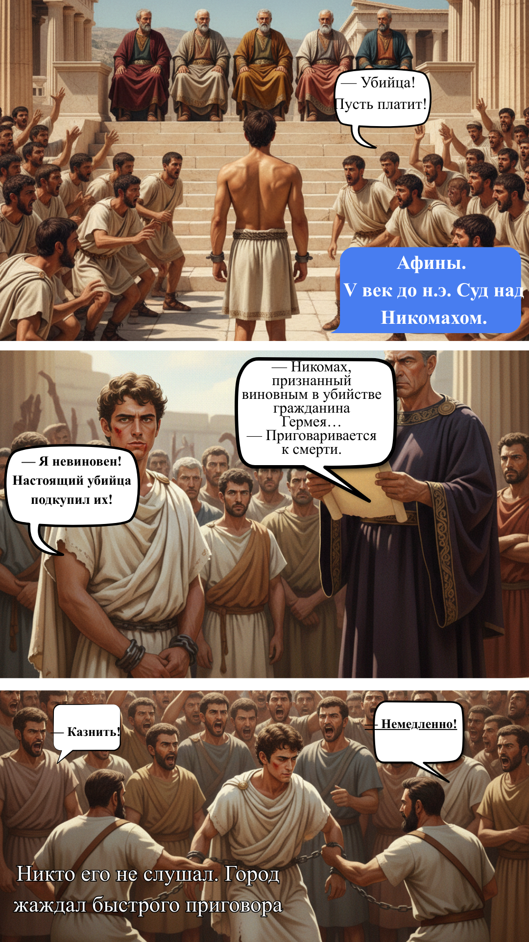 Две с половиной тысячи лет назад в Афинах невинный Никомах был казнён по ложному обвинению. Перед смертью он призвал богиню возмездия Немезиду и проклял тех, кто купил его казнь. С тех пор их потомки обречены.