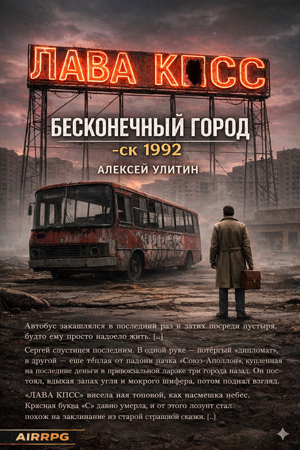 1992 год. Советский Союз распался, а его призрак еще бродит по улицам безымянного провинциального городка. Старые правила рухнули, а новые правила пишутся на ходу теми, кто осмелился и смог схватить момент. - это сеттинг, предлагаемый по умолчанию. будет предложен также случайный или вы можете выбрать свой. Рассказ-промпт airpg. Прилагаемый текст промпта вставьте в окно чата любой llm модели (чатжпт, дипсик, алиса, грок и тд) , нажмите энтер и вы попадете в уникальный мир, который будет сгенерирован только для вас , автор лишь задаёт направление и правила (но вы можете их менять).