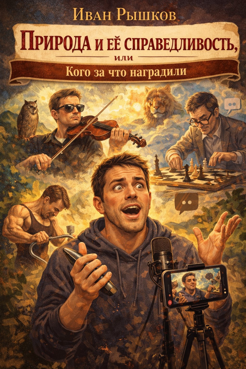 Ироничный философский монолог о том, как природа распределяет человеческие качества с почти бухгалтерской точностью — от гениев с плохим зрением до современных цифровых пророков с пустотой в голове и микрофоном в руках. Рассказ превращает блогеров, инфлюенсеров и «уверенных экспертов по всему» в продукт эволюционной компенсации: если мыслей не выдали, значит, добавили громкость, самоуверенность и аудиторию. Сквозь абсурд, сатиру и бытовые наблюдения автор выстраивает мрачновато-смешную теорию баланса, в которой терпение слушателей становится новой формой жертвоприношения ради устойчивости мироздания.