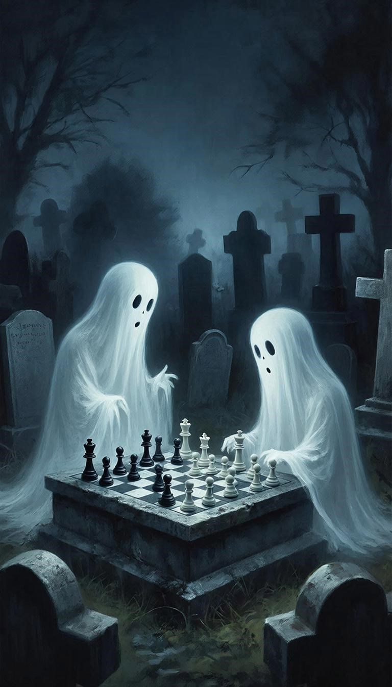 Ночь, кладбище, двое призраков просто общаются и говорят о насущных проблемах. Разговор перетекает в шахматные сражения, а что дальше? Как повернется сюжет, никто не знает.