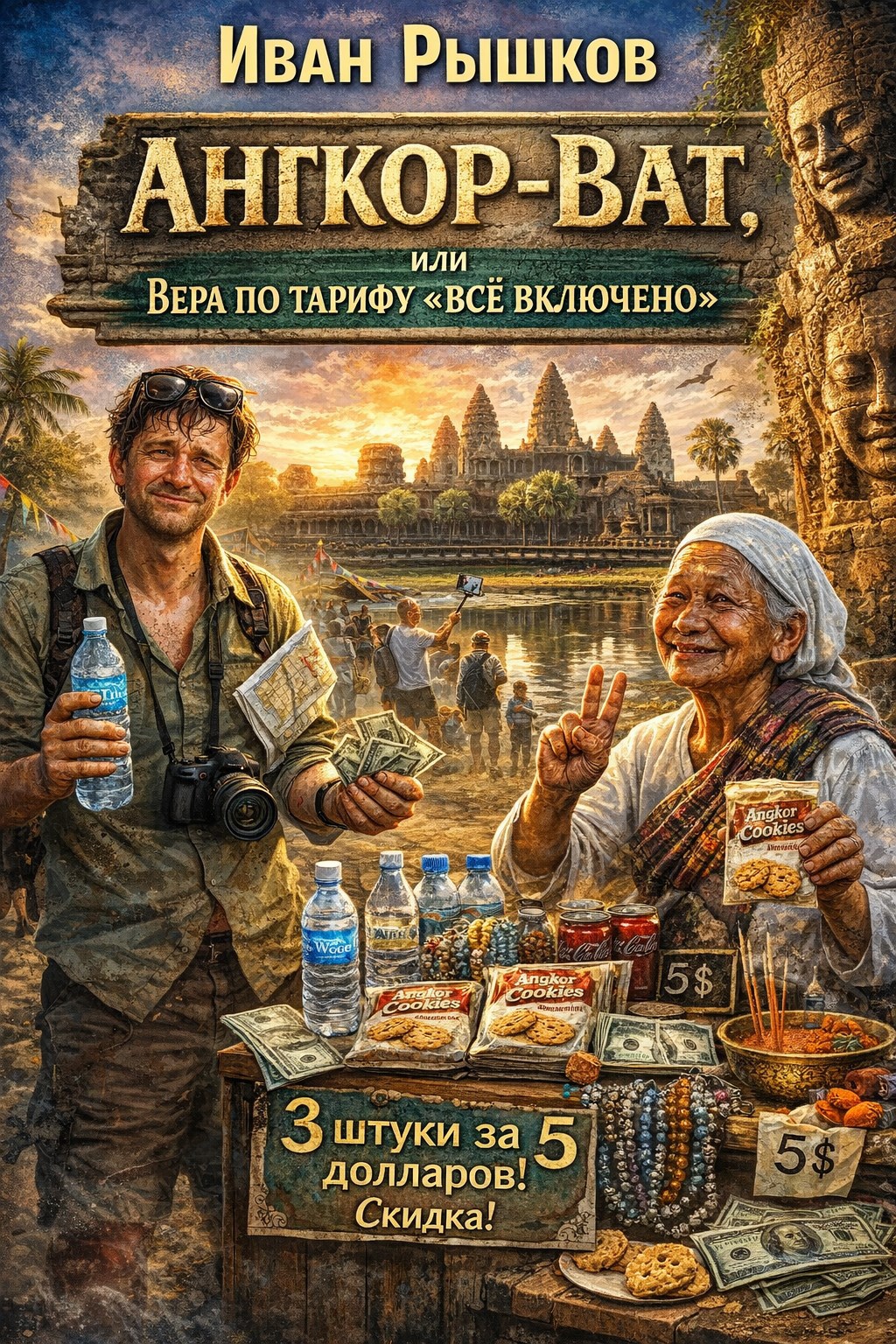 Отчаянный поиск вечности в камнях древнего Ангкора оборачивается для рассказчика фарсом священной торговли. Между попыткой прочувствовать дух великой цивилизации и настойчивыми предложениями купить воду, благословение или ребёнка для фото — рождается абсурдный, но честный диалог двух миров. Это история о том, как сакральное становится работой, паломники — клиентами, а вера — услугой с чётким прайсом. Путешествие не к богам, а к пониманию простой истины: иногда вечность кормит лучше, чем рис.