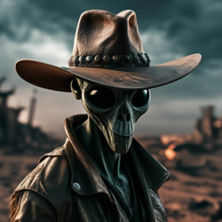 Томпсон поднял голову и увидел полчище гуманоидов-хамелеонов. Все они были совершенно одинаковыми: десяти футов ростом, с щупальцами вместо рук, кошачьими глазами, блестящей чешуйчатой кожей и длинными козлиными ногами. Так как глотку Томпсона наполняли песок он не мог произнести ни слова.