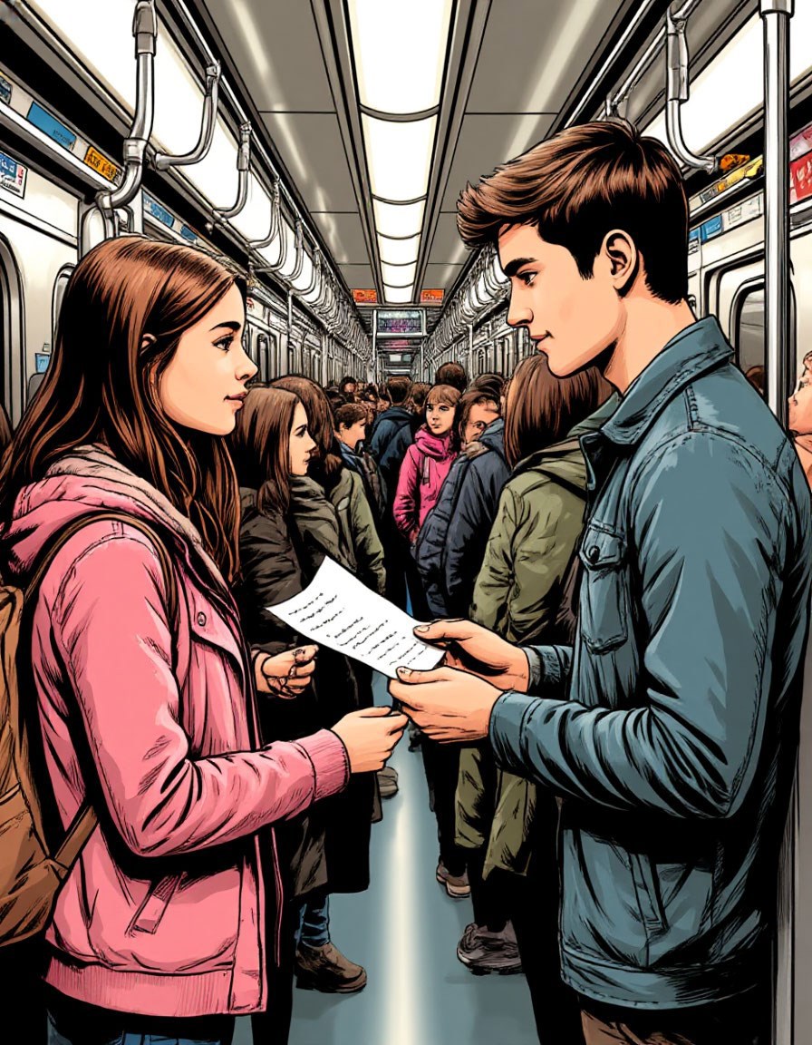 Дважды встречал в метро девушку неземной красоты. Писал несколько срифмованных строк и, выходя, протягивал ей записку с номером телефона. Вот они. Но она так и не позвонила.