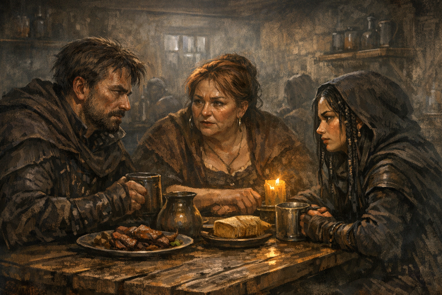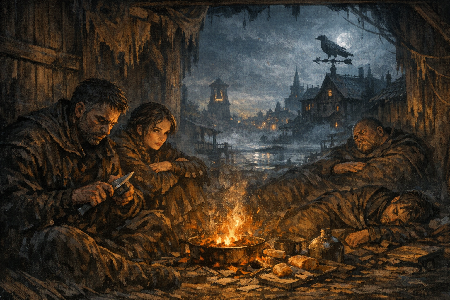 Авторский мир, вдохновленный мрачным средневековьем и классическим нуаром. Здесь нет однозначно положительных героев, зато много густого тумана, политических козней и крепкой браги. Приятного погружения.