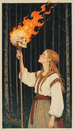 Неугасимое пламя защищает от любой нечисти. За ним ходят в одного через темный Лес. Жребий выпал Василисе, но она находит пламя не там, где искала, а дорога домой станет очень долгой.