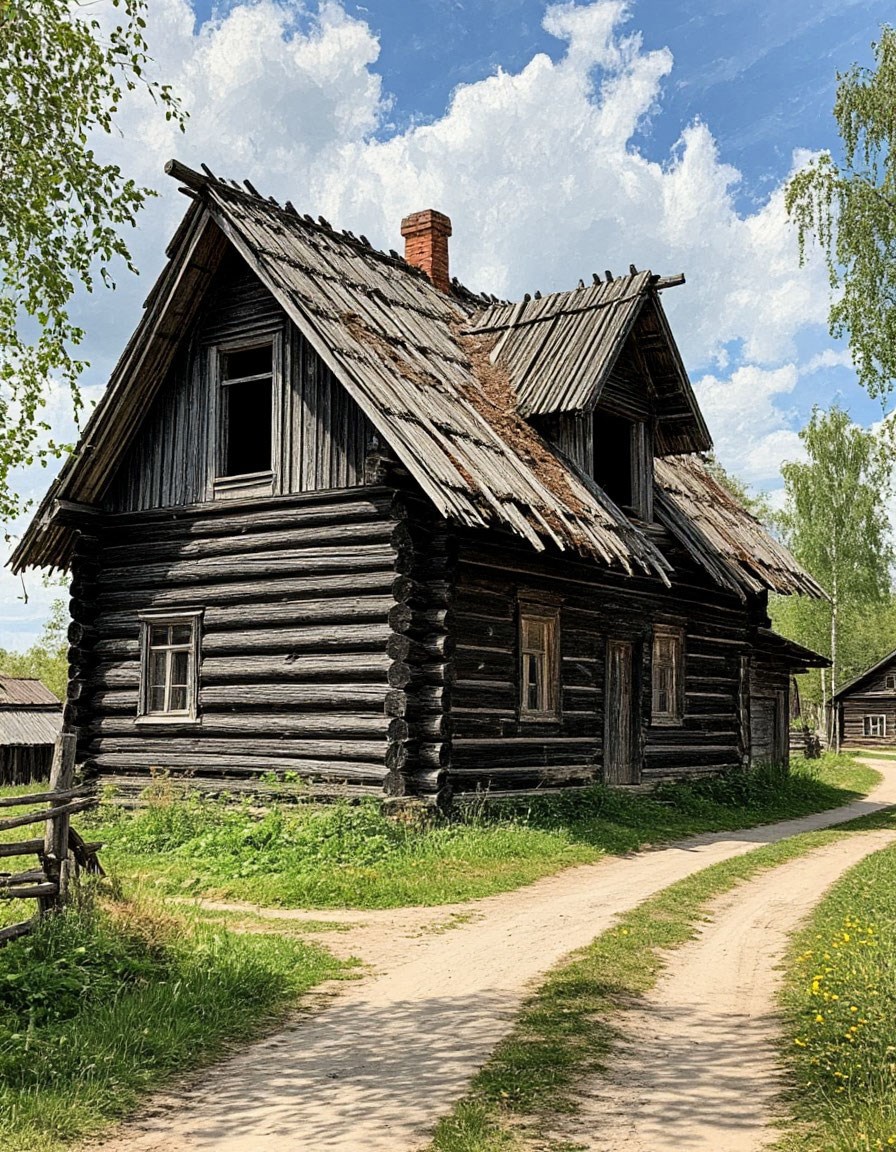 Когда-то мои родители снимали этот дом на лето. Потом сняли новый, получше. Хозяева спились, приезжали очень редко, и в конце концов умерли. И я, навещая летом родную деревню, в течение десятков лет наблюдал, как он старился, заваливался на бок, обрастал мхом и в конце просто сложился так, что крыша опустилась на землю. Потом его растащили на дрова.