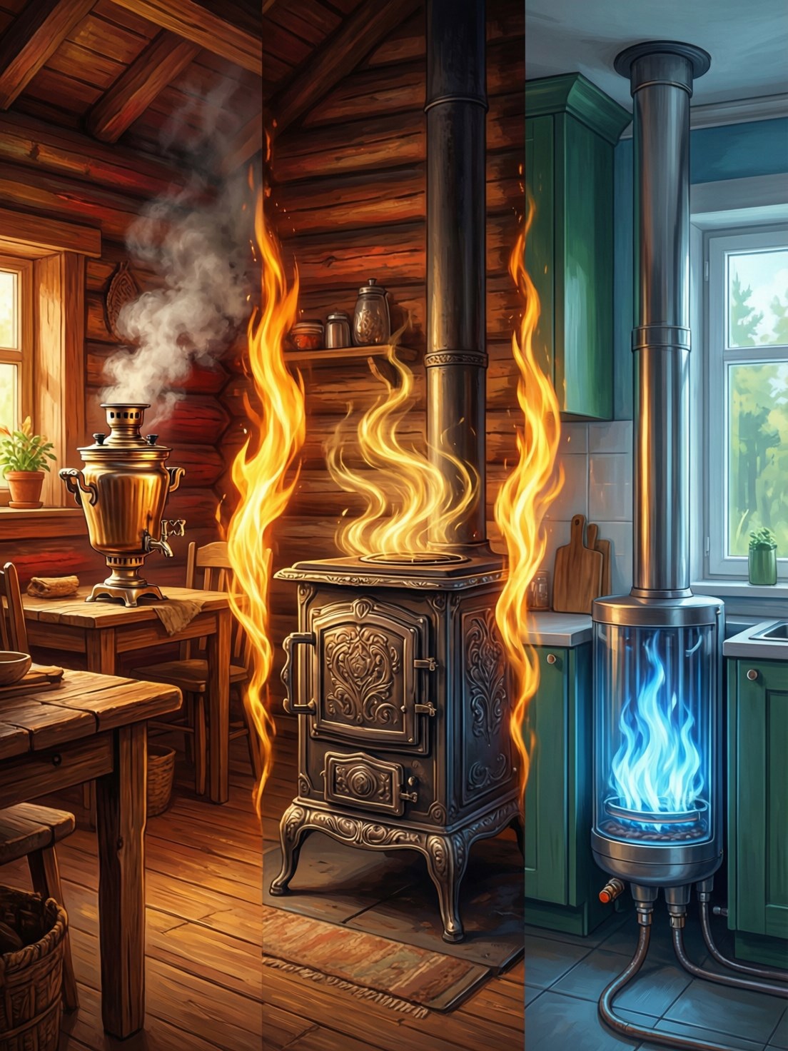 «Деградация буржуйки» — не о печке, а о распаде целостного мышления. От пещерного очага до ржавой бочки в форточке: история того, как человечество забыло, что один огонь может дать всё — тепло, еду, воду и смысл.