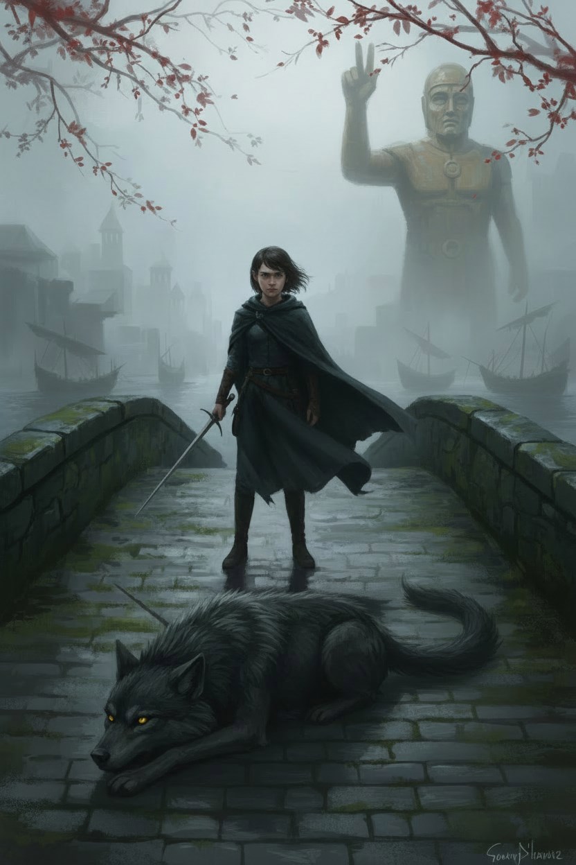 За Узким морем Арья Старк пытается стать Никем в Доме Чёрного и Белого, но варг-связь с Нимерией и шепот Старых Богов не отпускают её. Сны о волчице и чардреве приводят Арью к Брану, который уже перестал быть просто мальчиком. Она возвращается в Вестерос не как потерянная девочка, а как Волчица-Смерть, несущая зиму тем, кто забыл, что Север помнит.