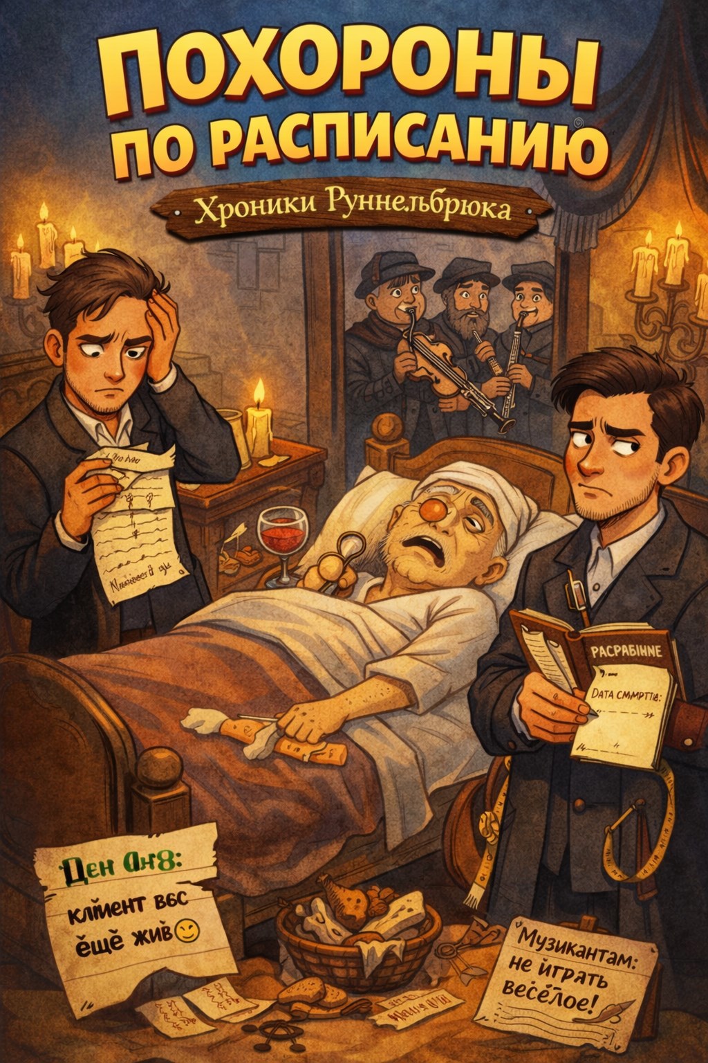 Гробовщик Элрик Молл подготовил все: гроб, музыкантов и скорбные речи — вот только клиент почему-то передумал умирать и требует бульон, жаркое и веселую музыку.