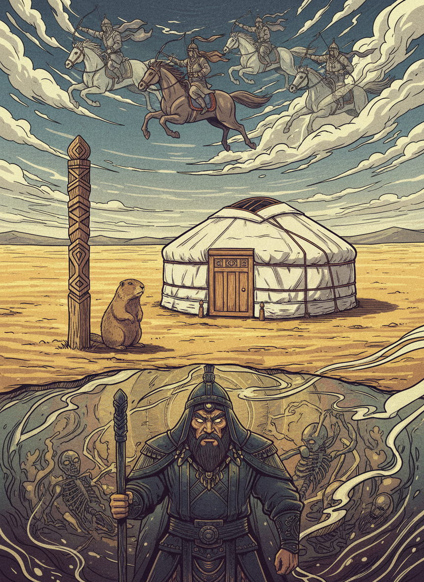 Под Вечным Синим Небом раскинулась на востоке солнечная Бурятия. Леса её, степи да горы, священное озеро славный Байкал - всё богатство края доступно людям. Но то, что видим мы, всего треть от истинного мирозданья. Три мира воедино связаны, три дороги параллельно идут - никогда не пересекутся, никогда не разойдутся. С сотворения мира жили в Верхнем мире великие духи - тенгри - мудрые, сильные, по-своему справедливые. Средний мир людям отдан да бурханам, что за Землей присматривают. Нижний мир - пристанище душ умерших, владения Эрлик-хана, и без него не обойтись, как дереву без корней. Много лет три мира, как один жили, а теперь забывать стали люди духов, не нужны они стали. Как о себе напомнить? Девушке из Тункинской долины Санжиме и парню Данилу предстоит много узнать об истинной природе родного края, о силе и коварстве тенгри, о равновесии, что важнее добра или зла. А еще найти себя и, может быть, наперекор всем друг друга.