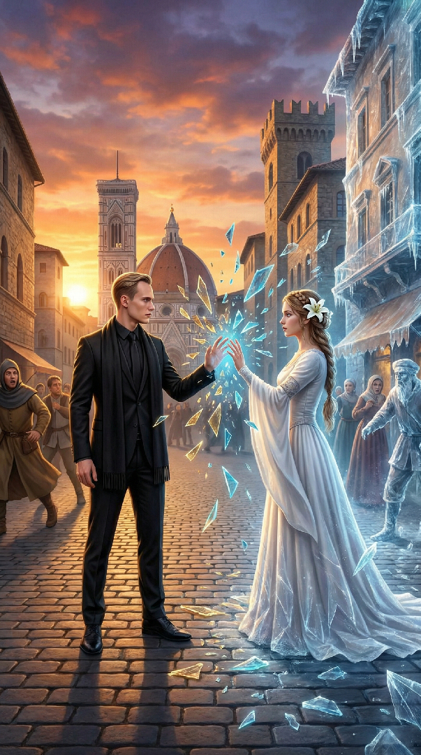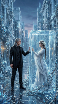Мир застыл в прозрачном плену. Для неё время остановилось в тот миг, когда она увидела его на рыночной площади. Для него это мгновение растянулось на тысячелетие одиночества среди стеклянных статуй и замерших облаков.