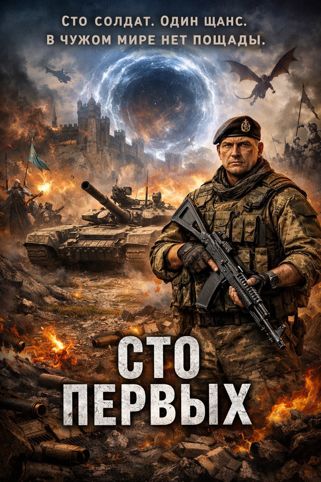 Сто лучших солдат Земли — русские, немцы, американцы, китайцы — уходят в неизвестность. С ними два танка, десять БТР, два грузовика с снабжением и бензовоз. Их цель ясна: разведка, укрепление, подготовка плацдарма для будущей колонизации. Дружбы с жителями нового мира нет. Эльфы, гномы, маги — все они объект захвата, а не союзники.