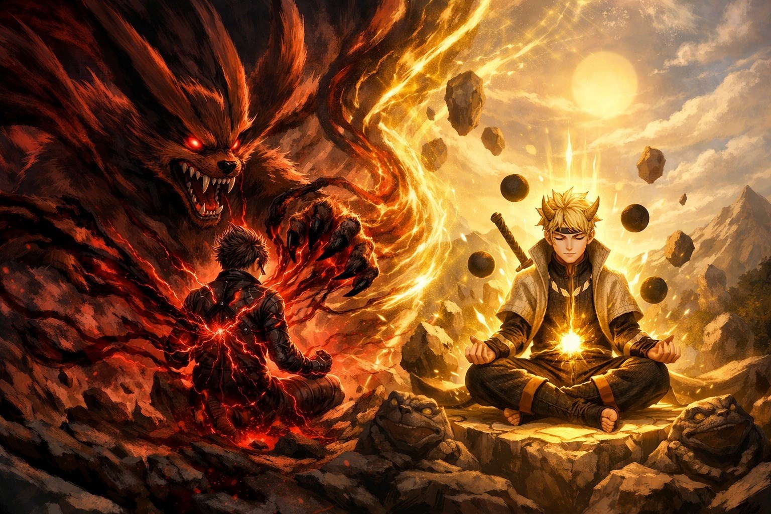 Сюжетная арка Наруто Узумаки, связанная с забором чакры у Девятихвостого и его последующим превращением в Мудреца Шести Путей, представляет собой не просто захватывающий поворот в сюжете, но и сложную, многослойную психологическую и философскую аллегорию. Этот путь от конфронтации к симбиозу с внутренней разрушительной силой можно рассматривать как универсальную метафору процесса индивидуации, сублимации травмы и достижения целостности через принятие и интеграцию отвергаемых частей собственного «Я».
