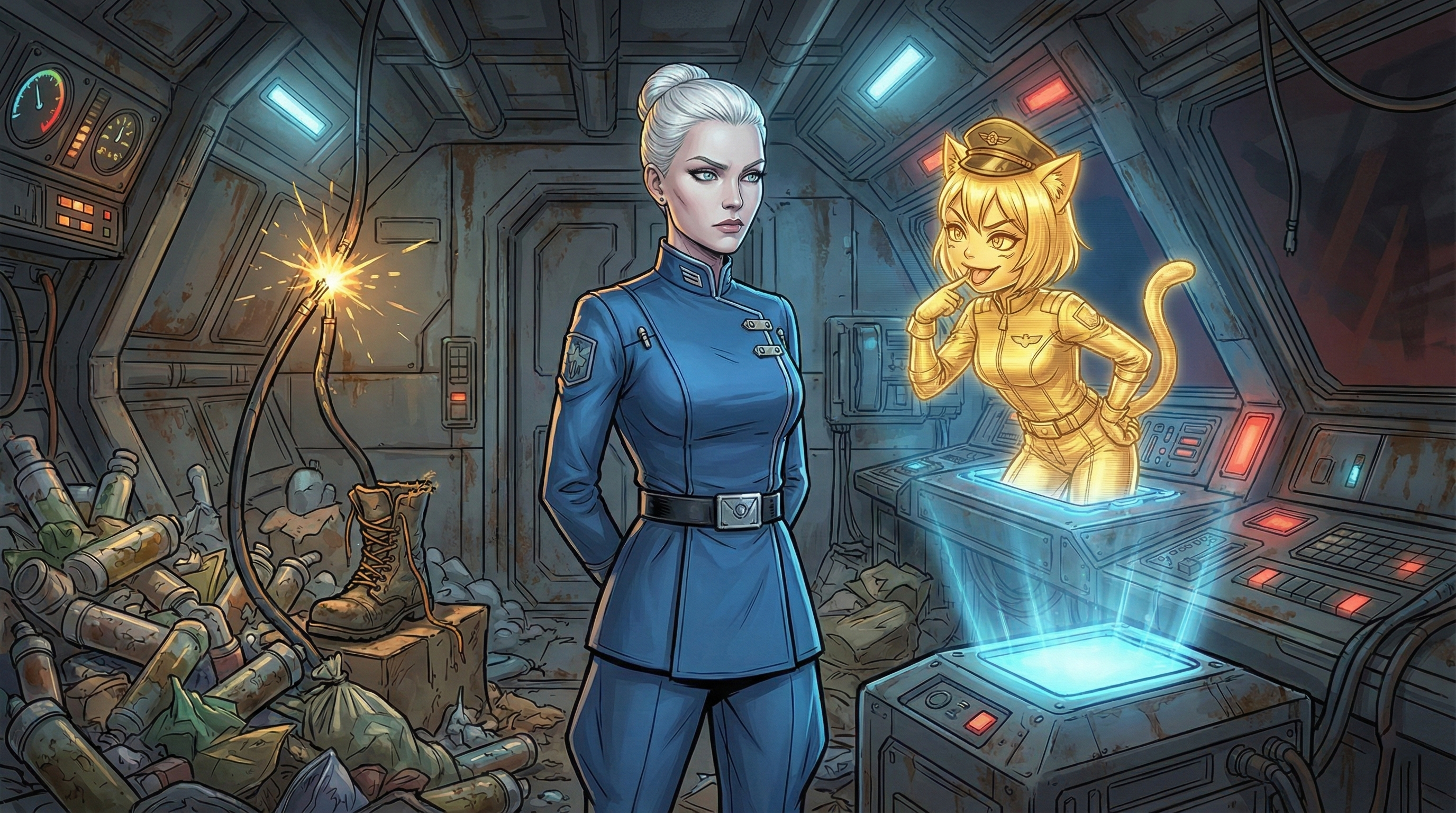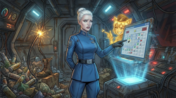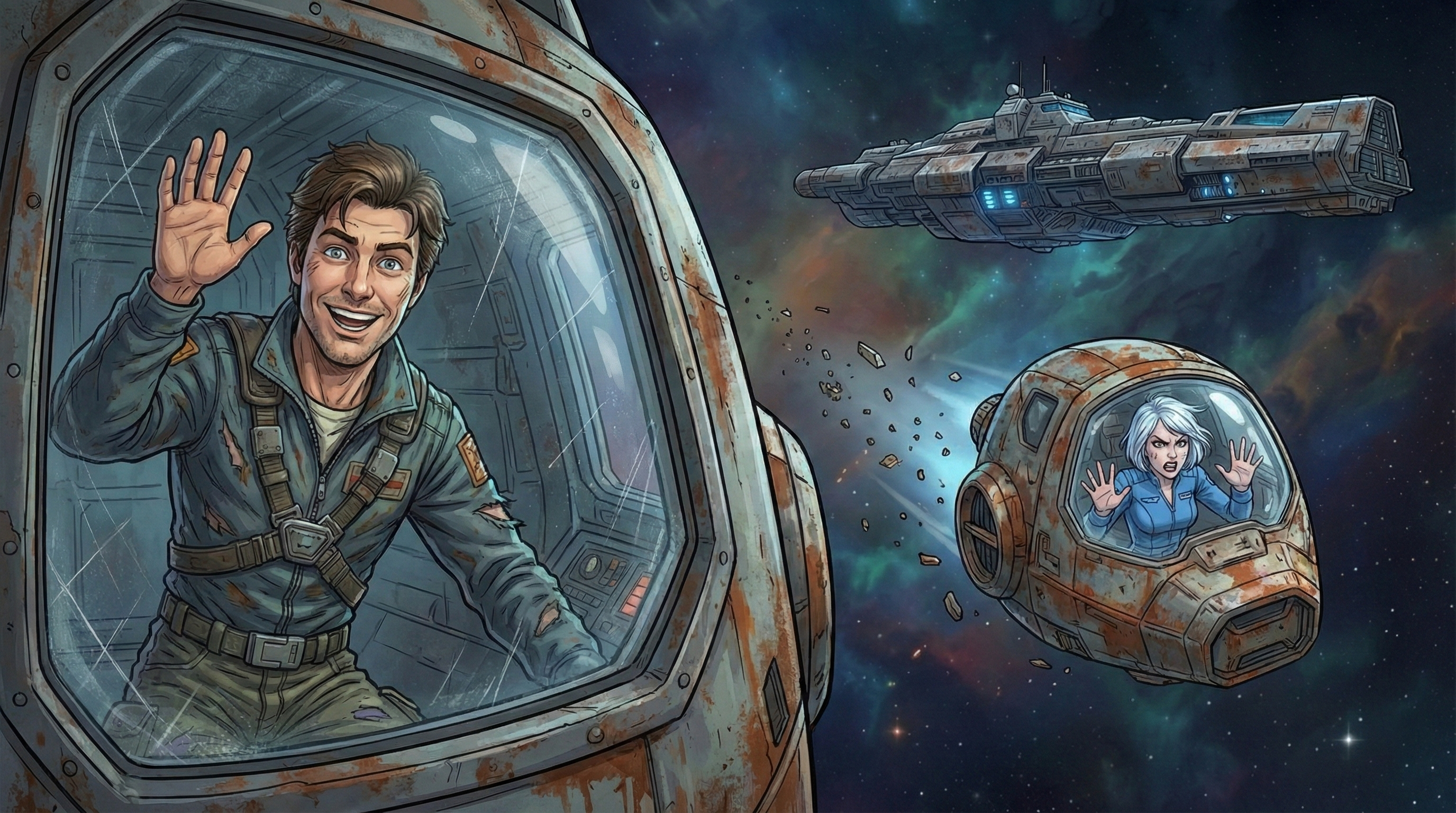 Я — космический мусорщик. Мой корабль держится на честном слове и синей изоленте, а банковский счет стремится к абсолютному нулю. Все, о чем я мечтал — найти тот самый «золотой лот», который вытащит меня из грязи.