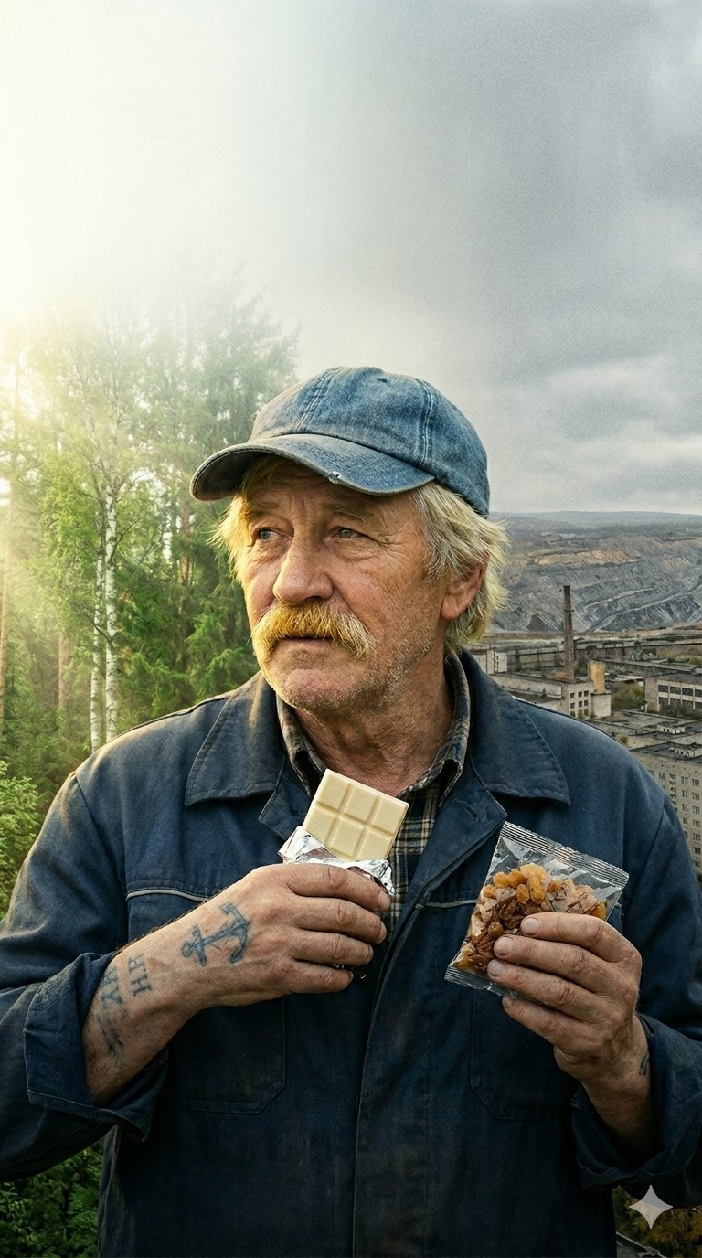 Рассказ-реквием о деде, который не ушёл, а просто сменил форму, став частью города, гулом кранов и тишиной в разрыве серых туч. Автор исследует тонкую грань между тактильной памятью (хруст изюма, холод лопаты) и метафизическим присутствием. Это честный взгляд подростка на смерть, где нет места розовым соплям, но есть суровое понимание: правда всегда пахнет дождем и сырой землей. А заикание — это лишь трещина, сквозь которую пробивается настоящий свет